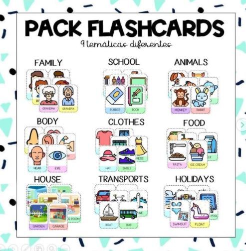 Pack de MÁS DE 90 flashcards de 9 temáticas diferentes